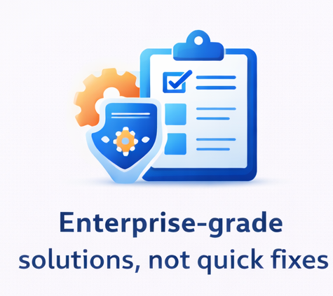 We design and deliver IT solutions with an enterprise mindset, ensuring reliability, scalability, and security — even for growing and mid-sized businesses. No shortcuts. No temporary fixes.