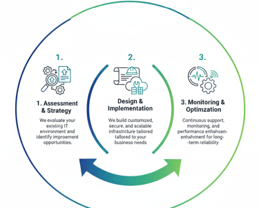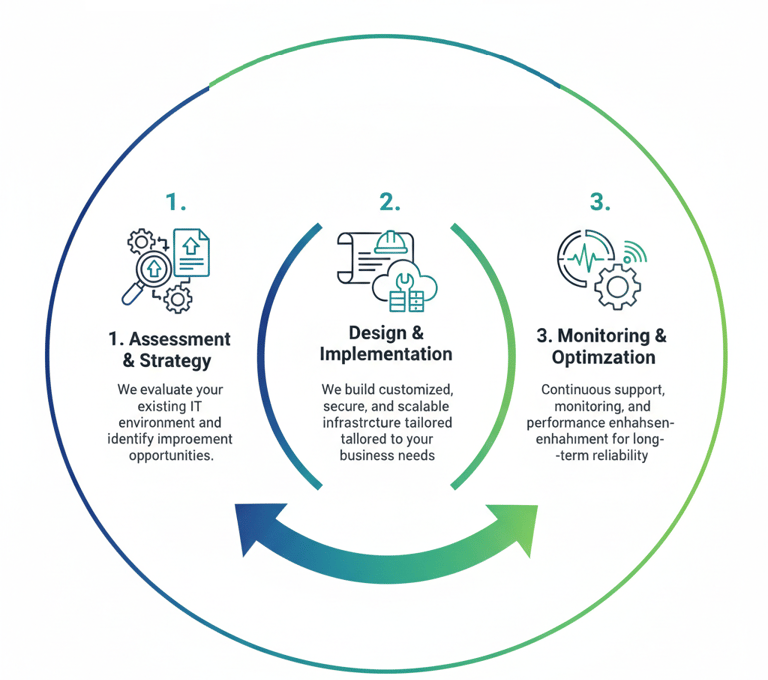 We offer comprehensive IT Infrastructure Services designed to optimize and streamline your business operations. From network management and cloud solutions to server maintenance and data security, we ensure your systems are efficient, secure, and scalable. Our proactive approach minimizes downtime, providing reliable support for your growing IT needs.